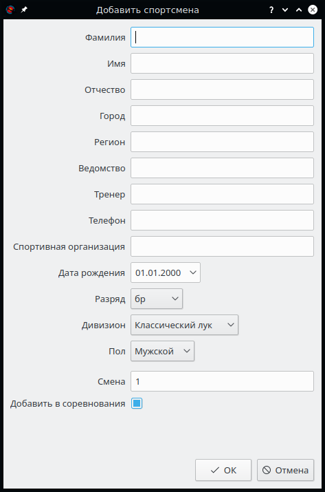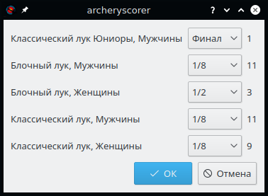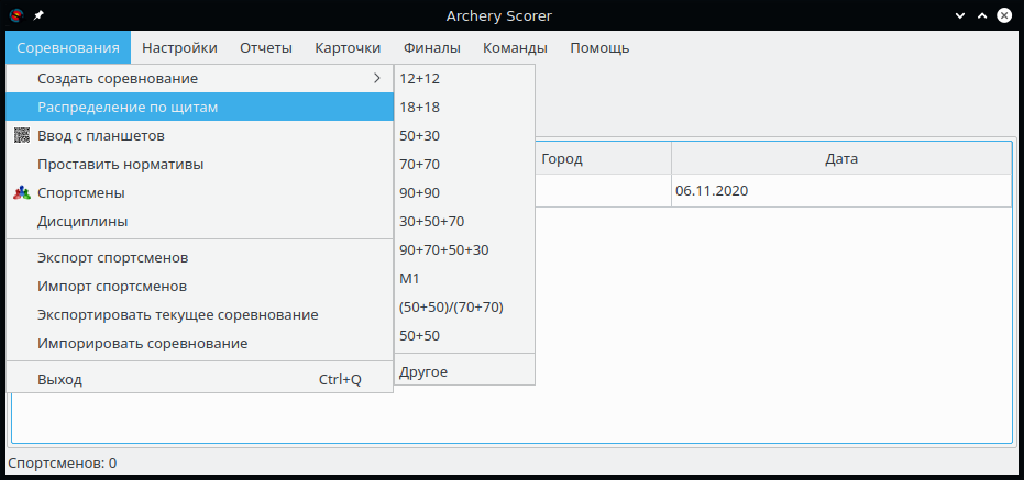 В программе имеется несколько стандартных шаблонов соревнований и возможность создать соревнование со своими параметрами.