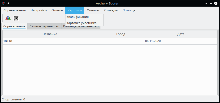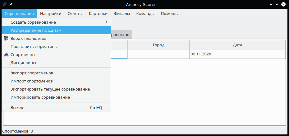 Создать соревнование можно через меню Сорeвнования→ Создать соревнование.