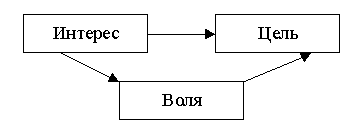 Первая фаза –– это, собственно начало социального процесса, поскольку сформирована воля субъекта как способность и готовность к деятельности. Сущность этого этапа –– целеполагание, как конкретизация интереса и выражение направленности воли субъекта. Схематически этот процесс выглядит так же, как и предфаза: