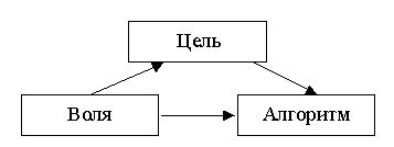 Вторая фаза. По существу своему, это процесс трансформации цели в план действий, т.е. производство алгоритма превращения цели в результат, "причем эта цель в исполнении (nexu effecting) стоит на последнем месте в представлении и намерении –– (nexu finali) –– на первом" (33, С. 82). Взаимодействие предстает нам очередной триадой: