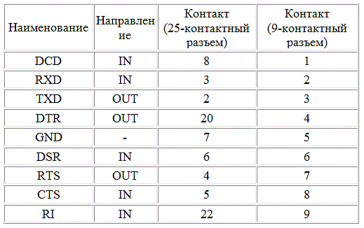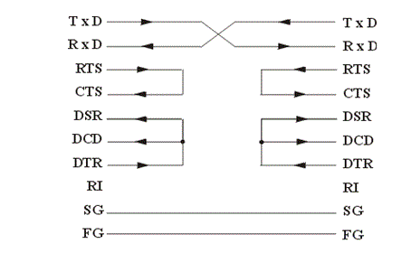 Для двухпроводной линии связи в случае только передачи из компьютера во внешнее устройство используются сигналы SG и TxD. Все 10 сигналов интерфейса задействуются только при соединении компьютера с модемом.