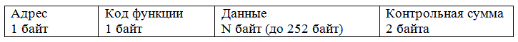 Рис.3.8. Формат кадра протокола Modbus RTU