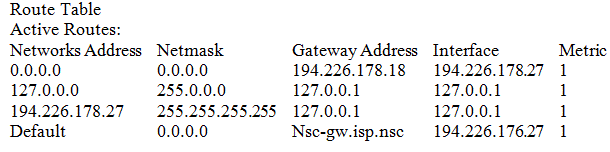 Команда netstat –r –n 3 – выдаёт таблицу маршрутизации ядра с интервалом 3 секунды. Например, в результате netstat –r –n на машине 194.226.178.27: